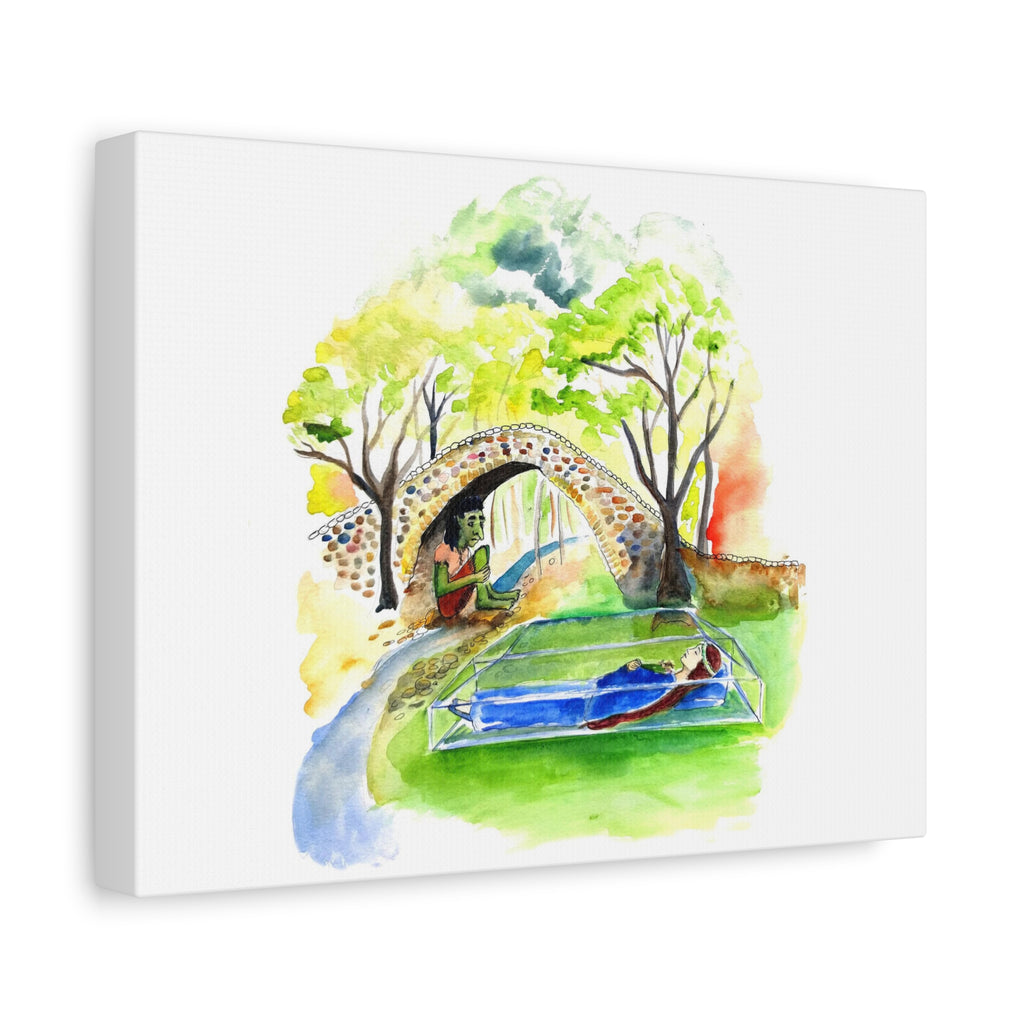 Enchanted Slumber canvas art print: Smaul the Troll and Princess Marjorie, 699 years and still sleeping.